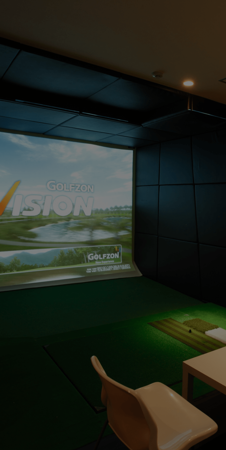 GOLFRoomが導入するのは大画面シミュレーションゴルフ(スクリーンゴルフ)の「GOLFZON(ゴルフゾン)」。体験できるコースは世界210カ所以上。大型スクリーンで、迫力あるリアルなゴルフ体験をお楽しみいただけます。